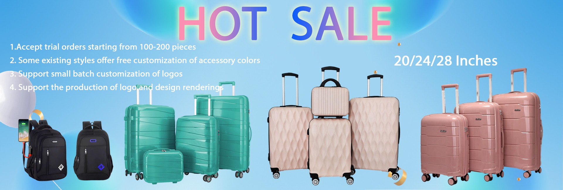 20" 24" 28inches PP Luggage Sets Carry on Trolley Suitcase Luggage With Tsa Lock 360 Degree Universal Wheels Koffer Sets